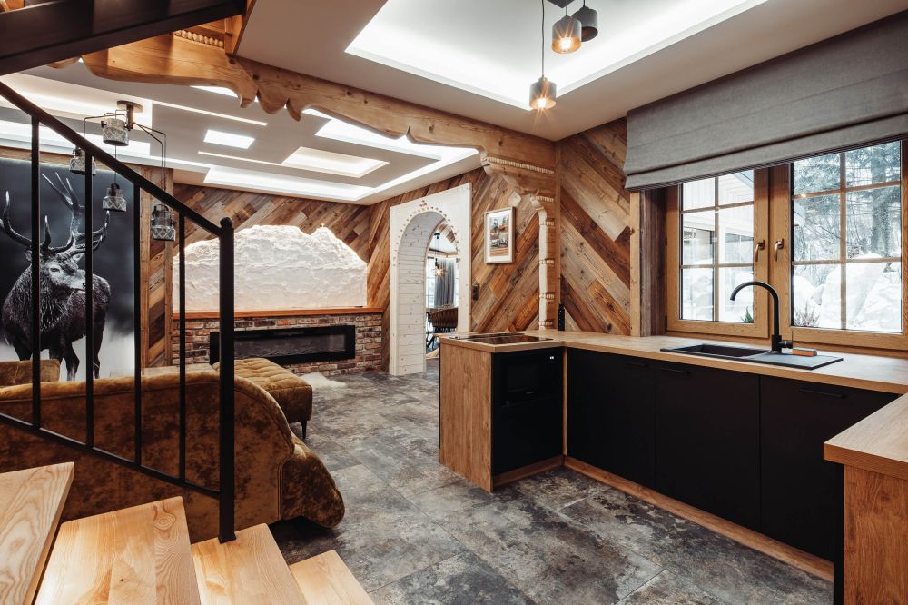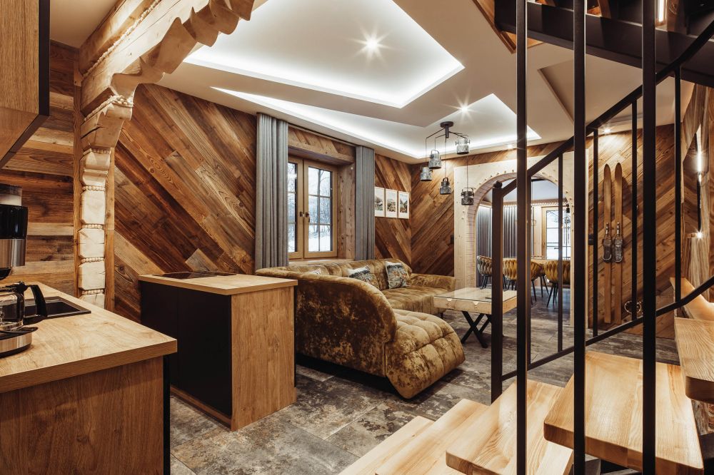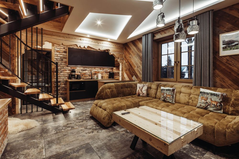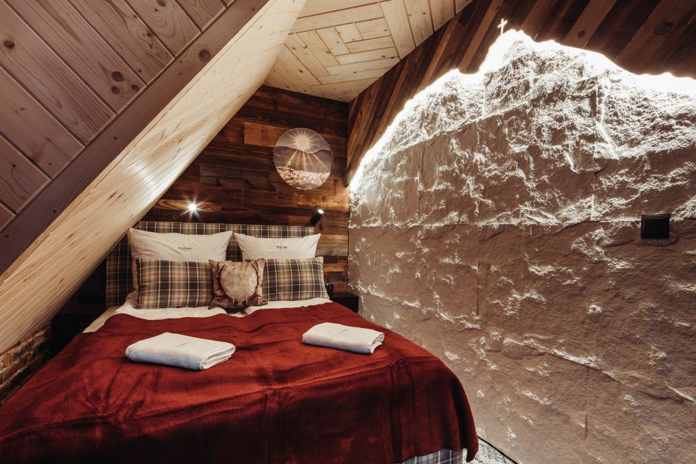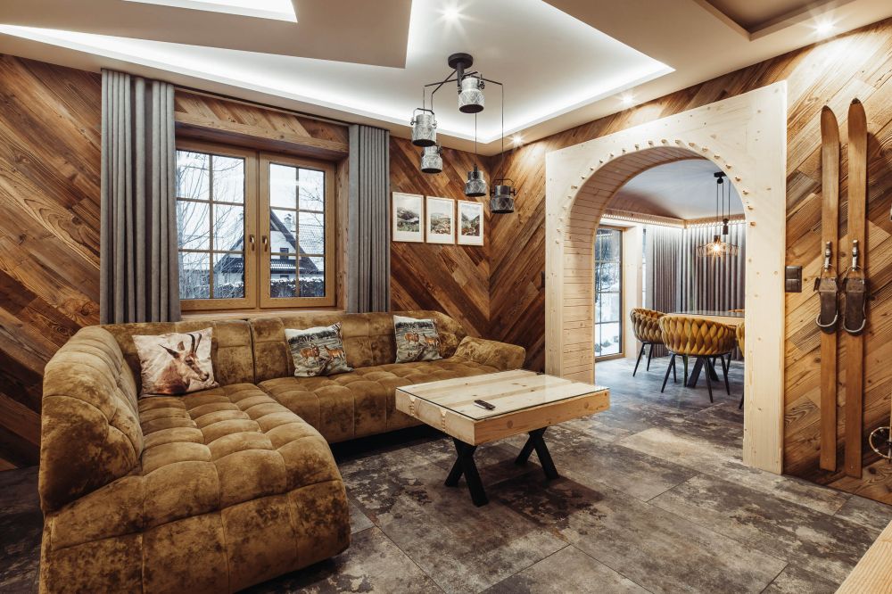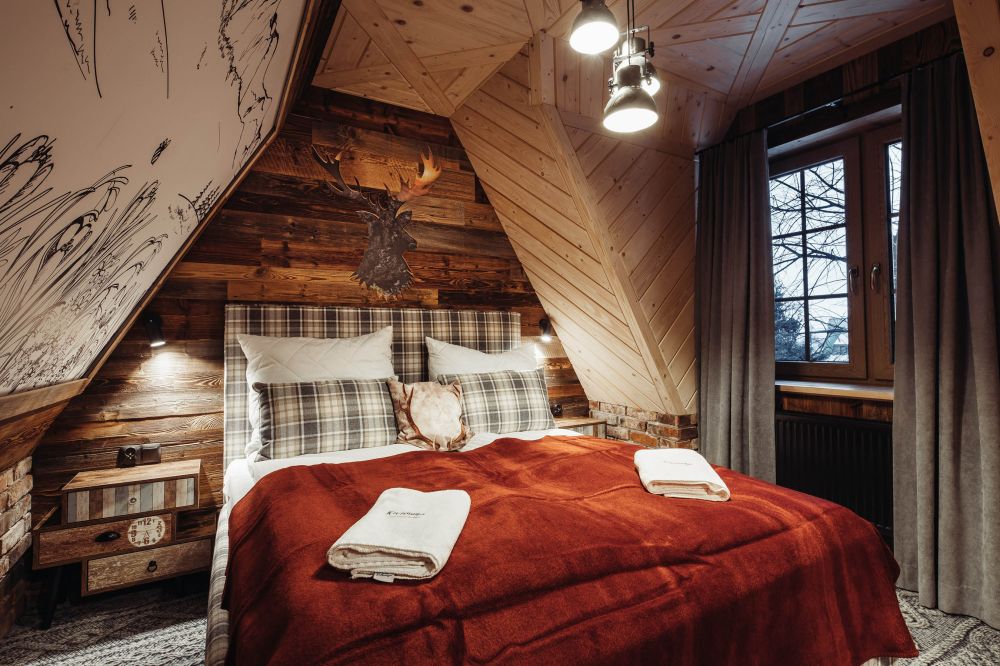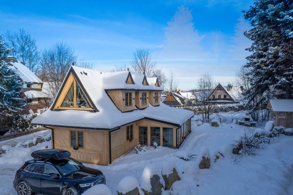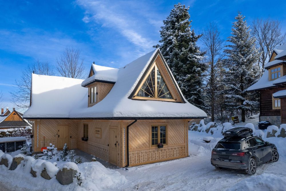 Komfortowy, drewniany, regionalny domek klasy PREMIUM dla 8 osób z czterema osobnymi sypialniami i dwoma dużymi salonami i dwiema łazienkami. Domek jest przykładem regionalnej podhalańskiej architektury, łączącym elementy tradycji podhalańskiej z nowoczesnością wyposażenia. W architekturze wnętrza znajduje się wiele oryginalnych elementów, które nadają mu niepowtarzalnego górskiego klimatu. Przed domkiem znajduje się ogród, a w nim wypoczynkowa altanka i zewnętrzny grill! Przed domkiem dostępne są 3 miejsca parkingowe.