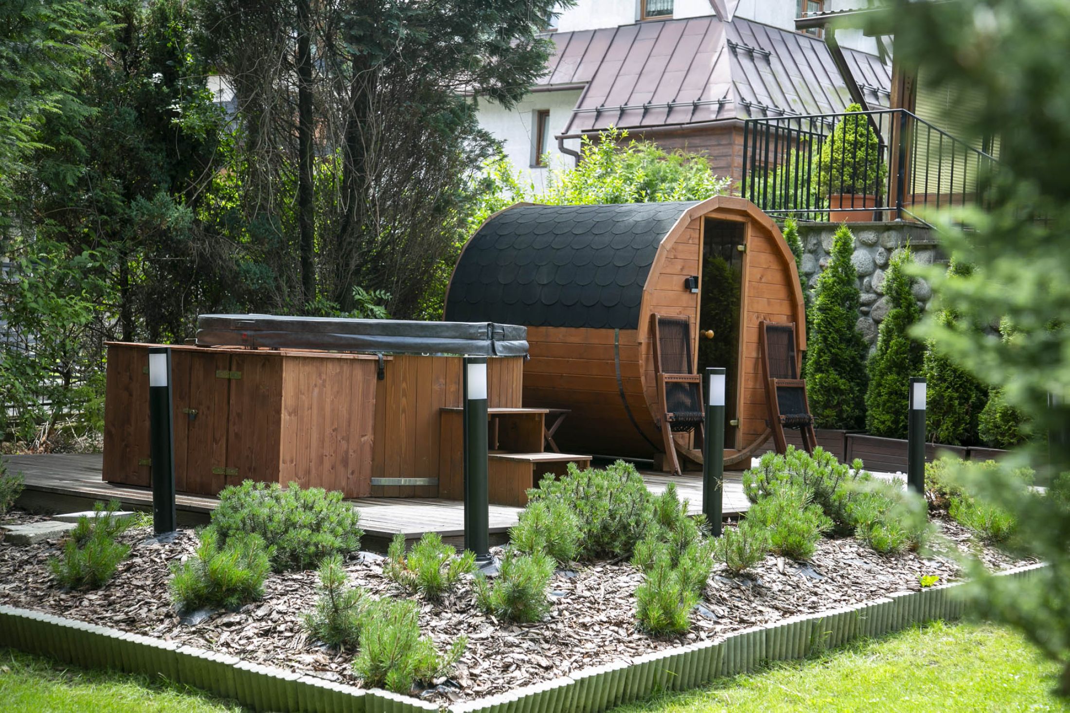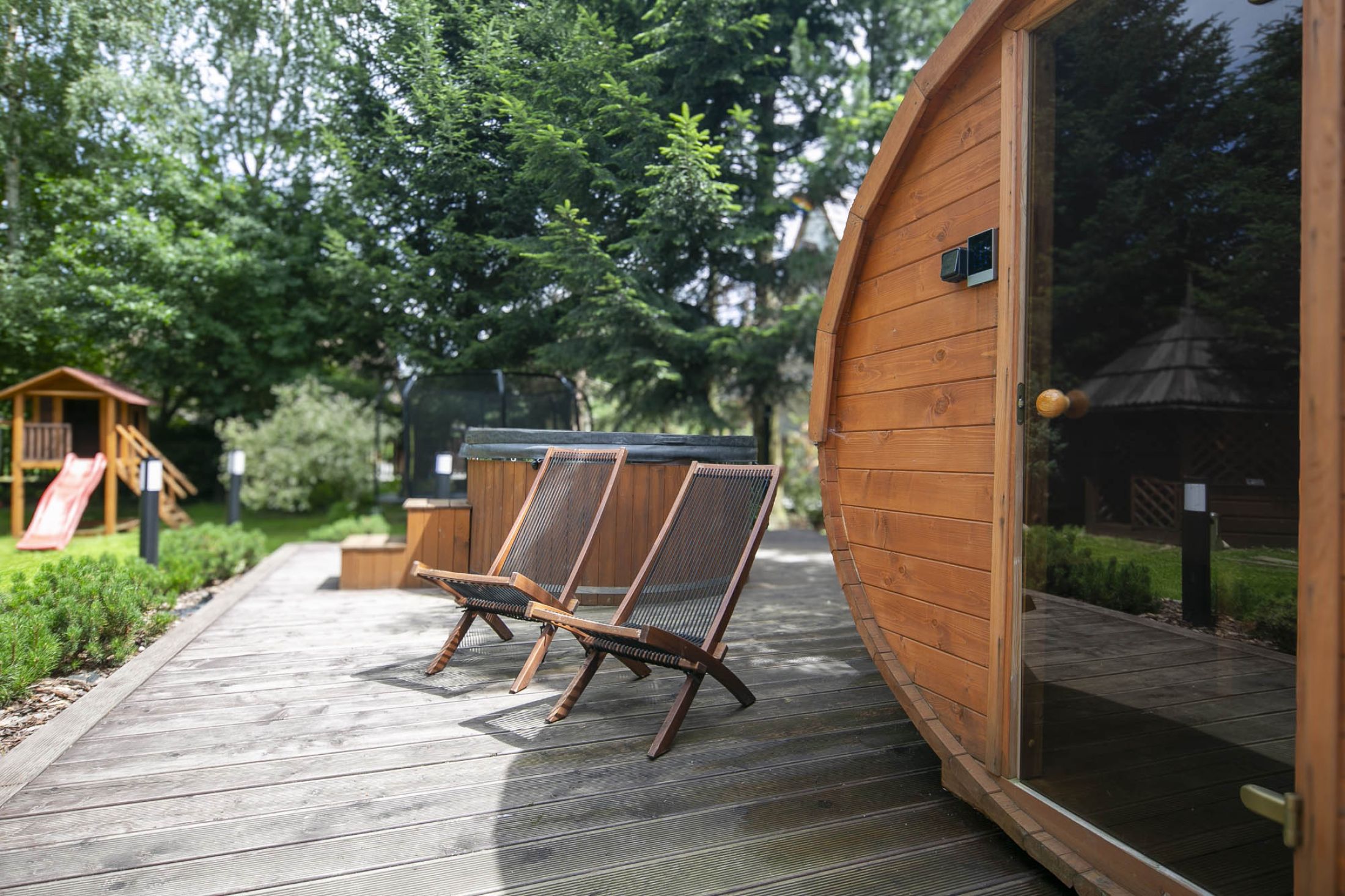 W obiekcie znajduje się strefa SPA z zewnętrznym jacuzzi i sauną!